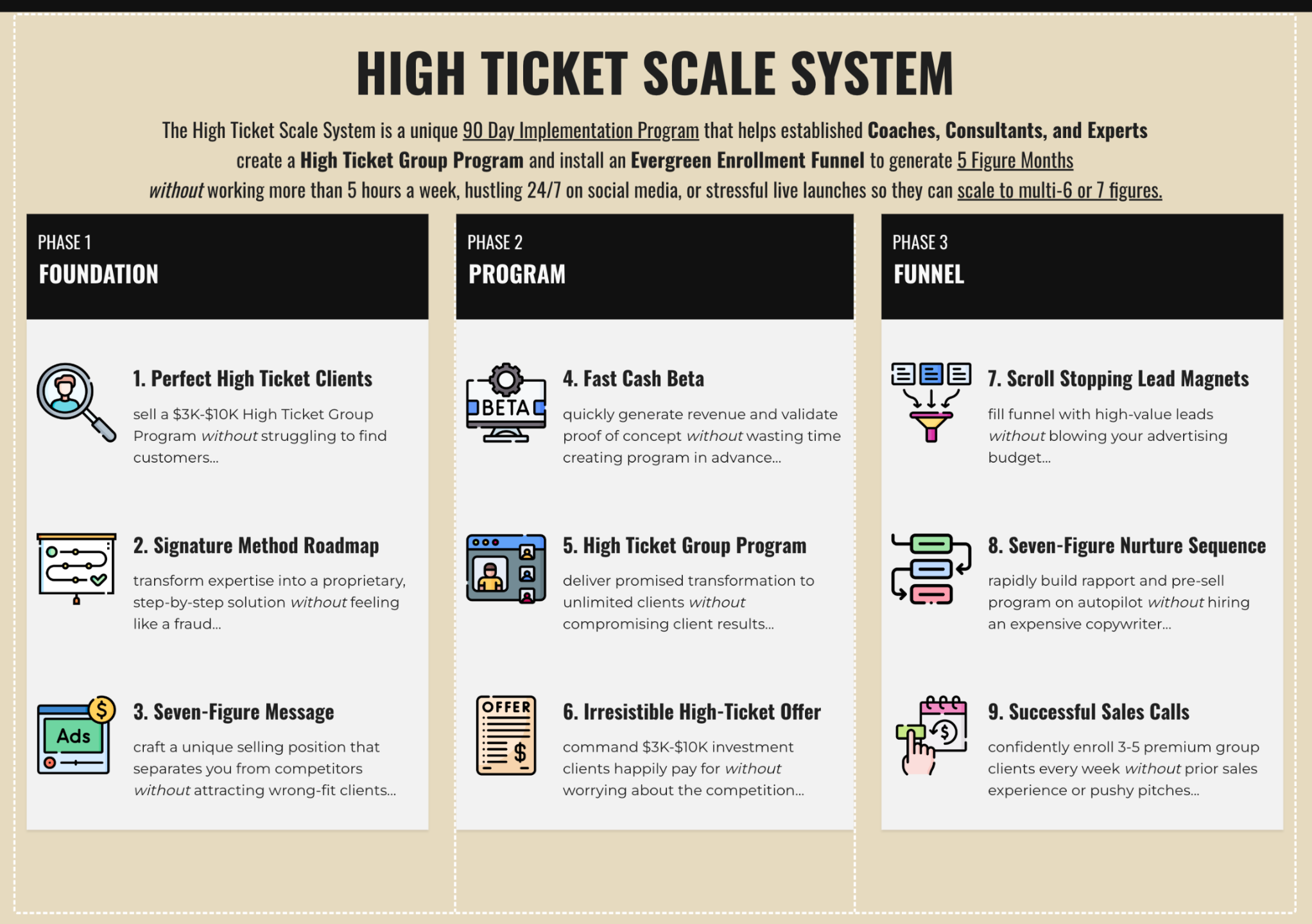 Would you like to have $10K- $50K months but have no idea how to streamline everything with a clear path from attracting highly qualified leads to enrolling them in your High Ticket Group Program?